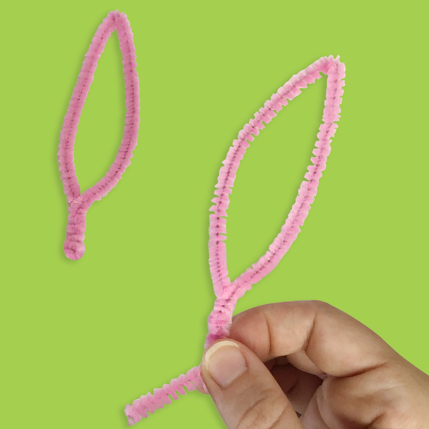 • Step 4 Fold a chenille stem in half. Create a bunny ear like the one shown in the image. Twists the ends of the chenille stem together to hold the shape of the ear in place. Trim any excess chenille stem.