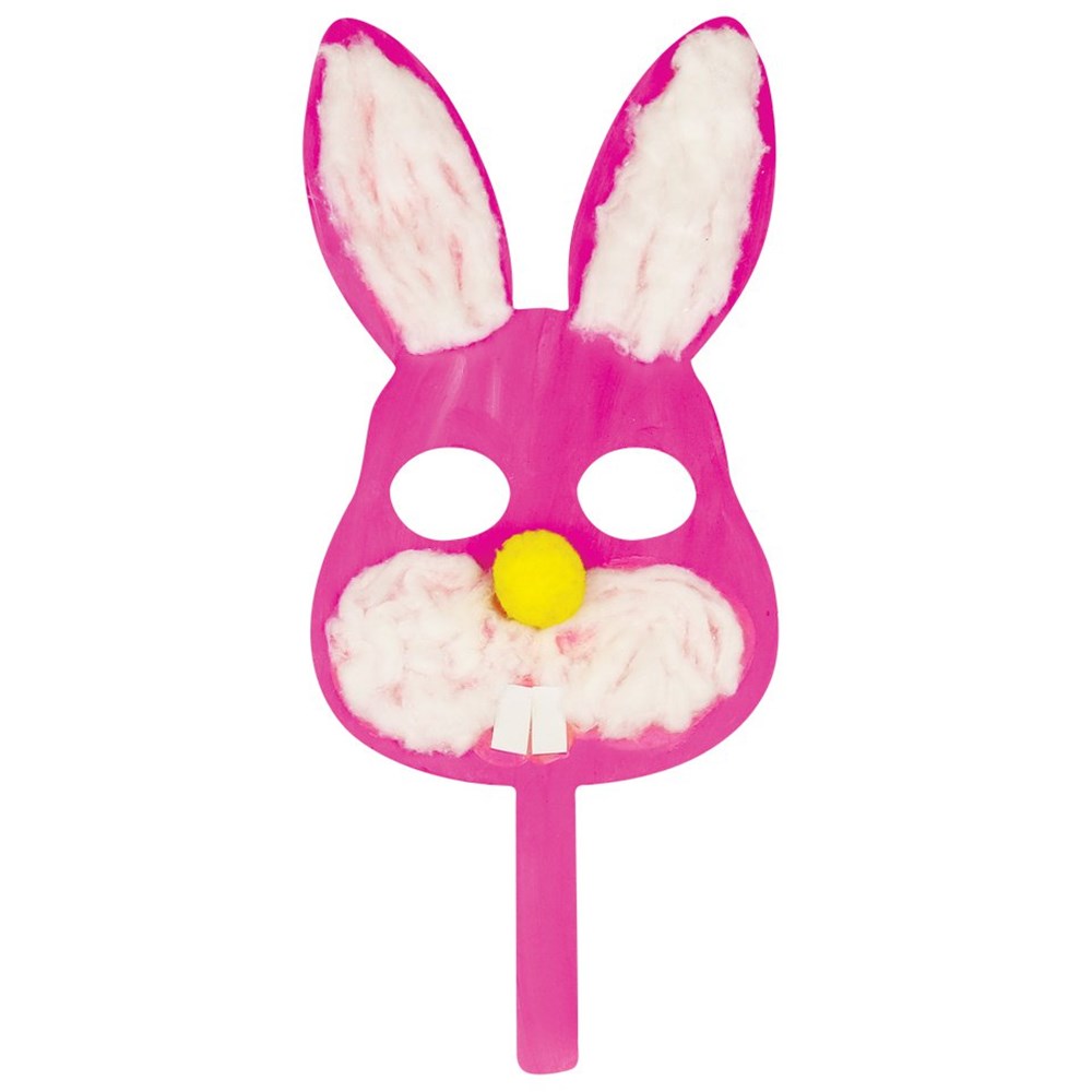 Pink Wooden Cotton Wool Ball Bunny Mask