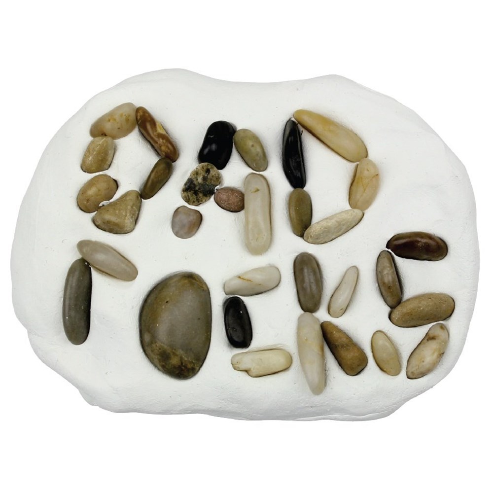 • Step 2Push the pebbles into the clay spelling out the words ‘Dad rocks’.