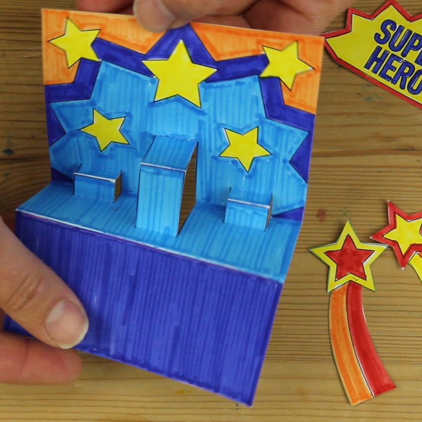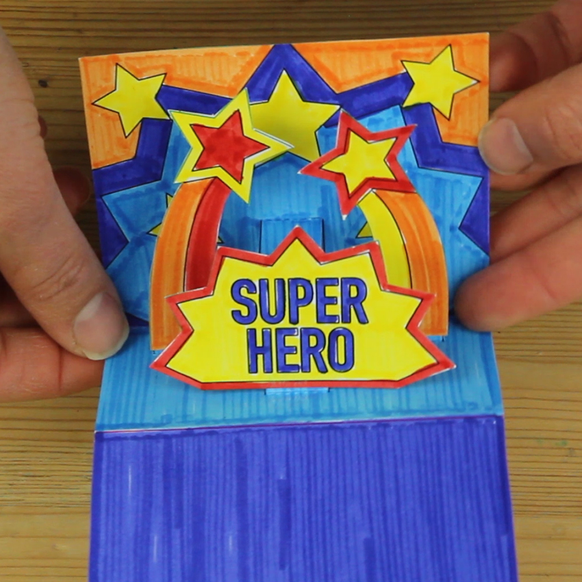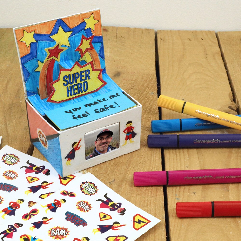 This gift from the heart is sure to make any Dad feel like a Super Hero! Create the fun pop-up box following our step-by-step guide and then fill it with all the reasons Dad is your Super Hero.