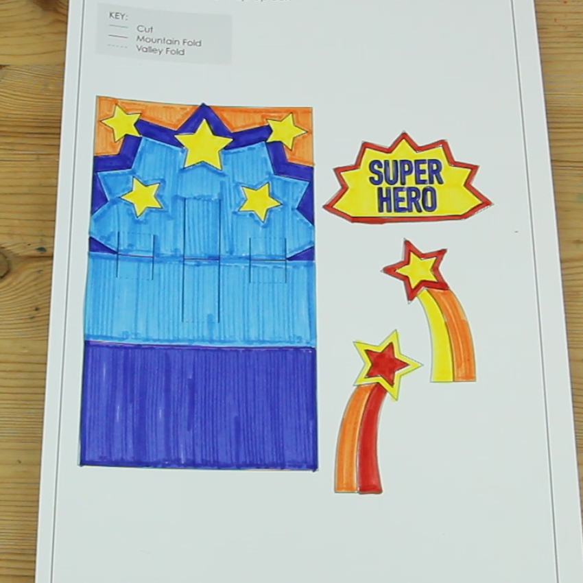 • Step 1 Download and print the template provided onto white cardboard. This will provide a sturdy base for creating your pop-up. Decorate the template using markers, pencils, or paint. Allow to dry if needed and then cut out the pieces. Adult supervision is recommended when using scissors.