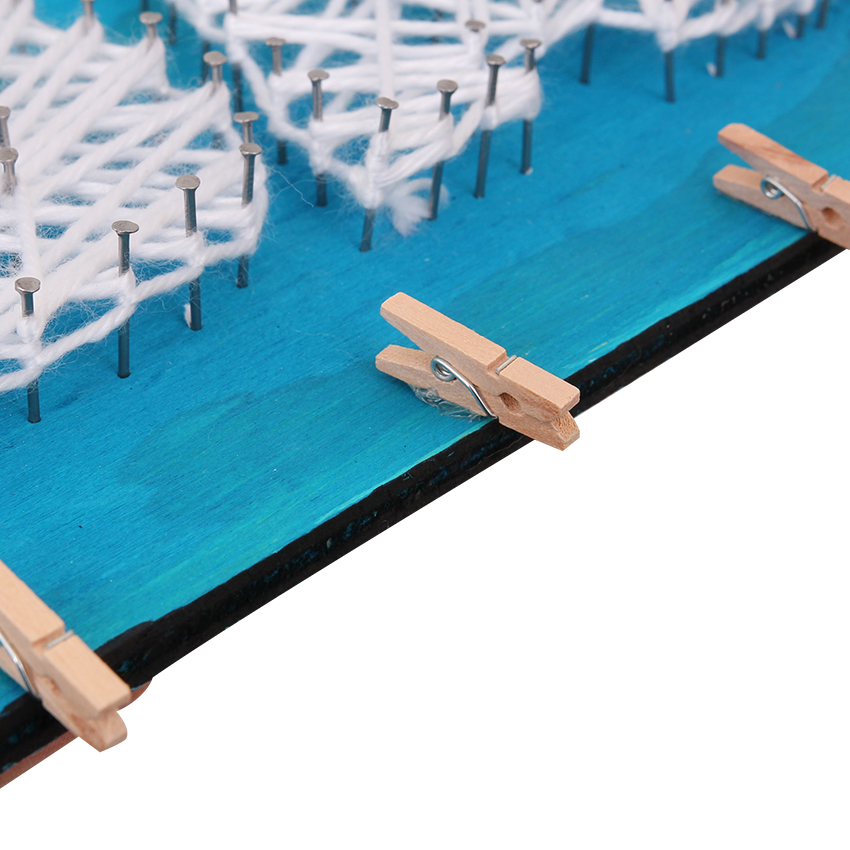 • Step 7Evenly space 5 mini pegs along the bottom of the string art board. These will be used to hold your photos! Use PVA glue to attach one side of each peg to the board. Allow to dry.
