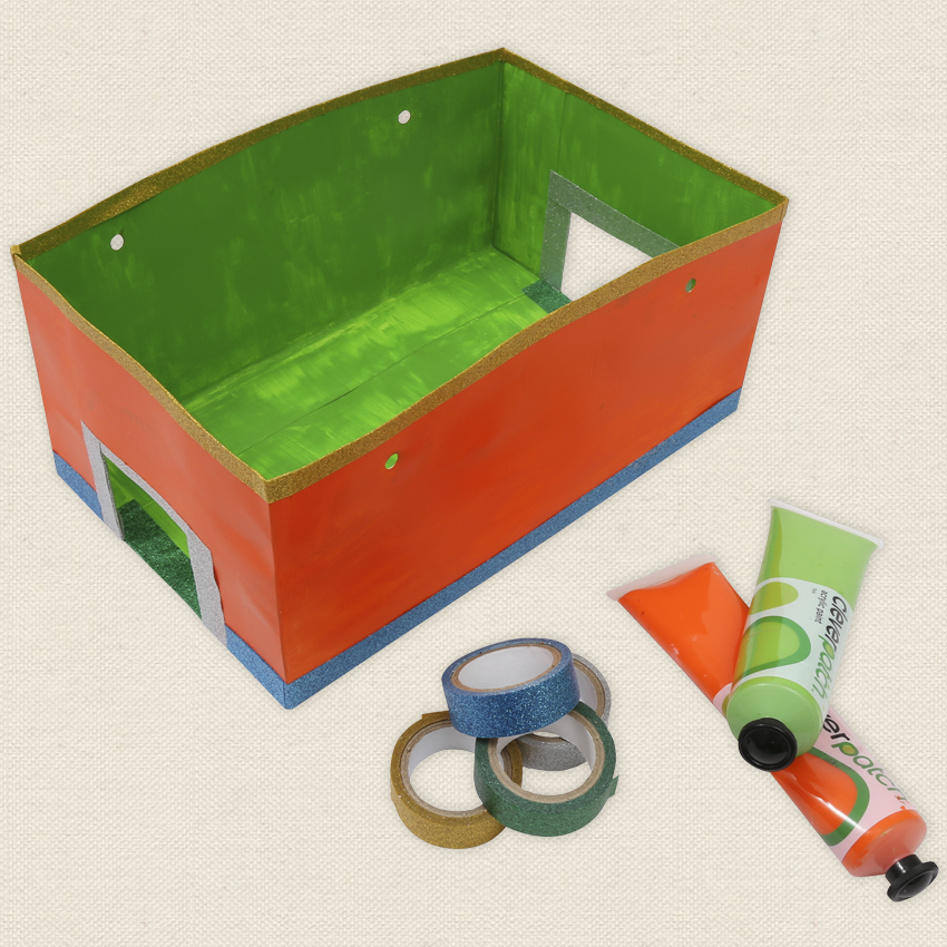 • Step 5 Decorate your diorama box using CleverPatchâ„¢ Acrylic Paint and Glitter Washi Tape. Allow to dry.