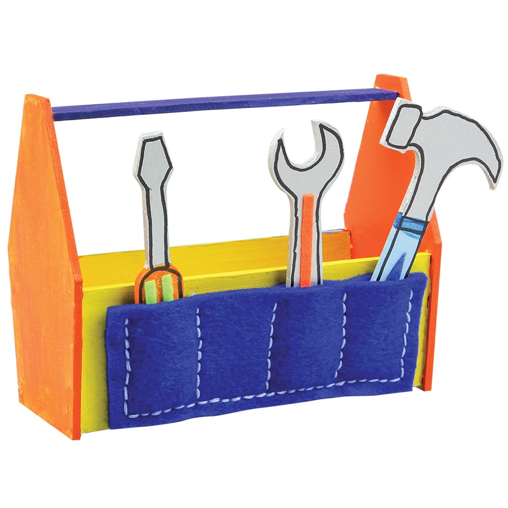 This nifty little tool box is all dolled up with its tool belt and tools! It's the perfect spot for Dad to leave his coins, nuts and bolts all the other bits and bobs that come out his pocket after a hard day at the office.