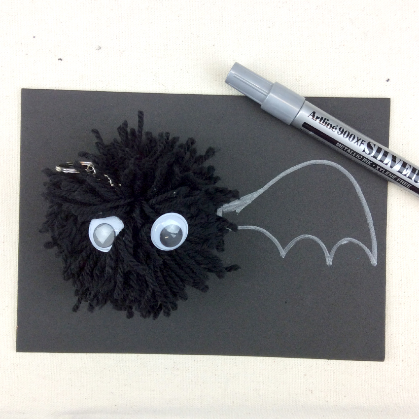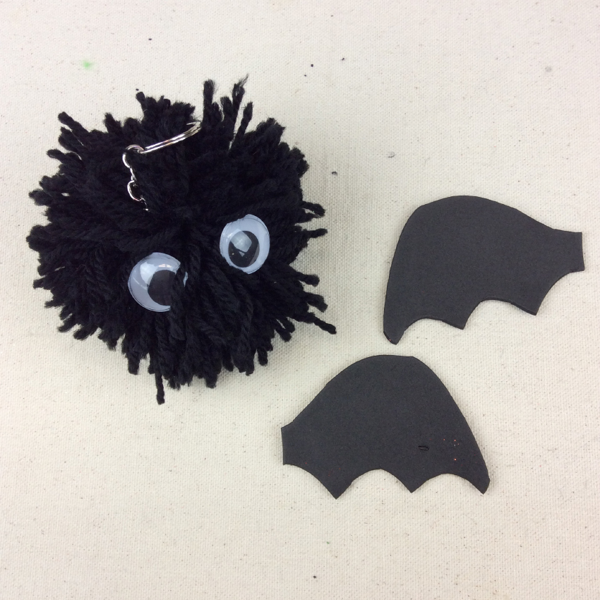 Search terms: pom pom, bat, halloween, fluffy, key chain, backpack