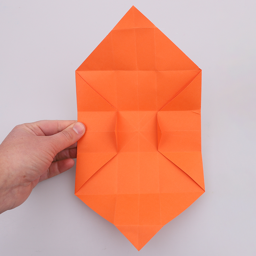 • Step 7Open up the top and bottom folds as shown. You will now see a large square with a triangle at the top and bottom.