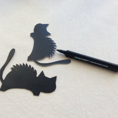 • Step 3Cut out the cat silhouette using scissors. Adult supervision is recommended when using scissors. Then colour around the white edge of the cardboard with a black marker.