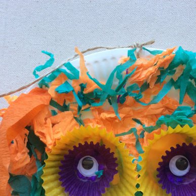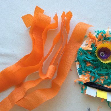 • Step 7Using a single hole punch, place 4 holes along each side of the face and one at the top. Thread crepe streamers through the holes so they hang down.