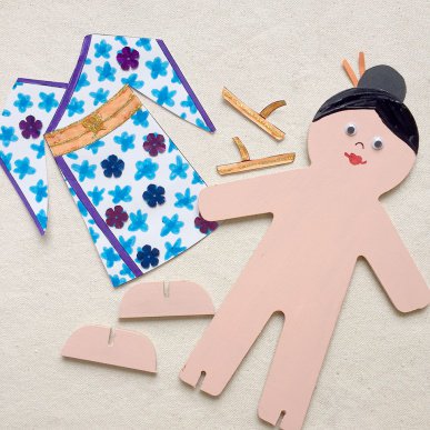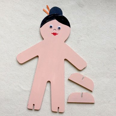 • Step 5While the decorated costume is drying, take the 3D Wooden Person and paint on the skin, face, hands and any other details you wish to add. You may also wish to add detail using collage materials including wiggle eyes. Attach with glue and allow to dry.