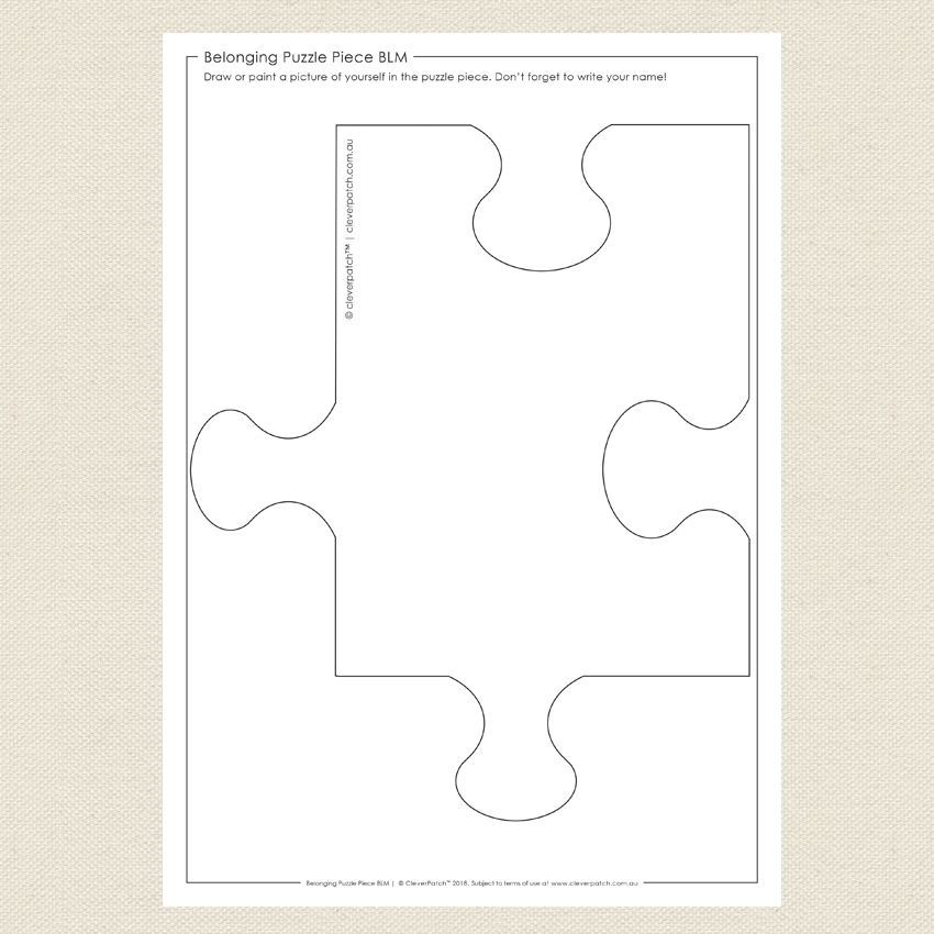 • Step 1 Download and print the Belonging Puzzle Piece BLM onto cover paper – make sure you print enough copies for the entire classroom! It has been set up on an A4 sheet, but can be enlarged to 141% which will fit onto an A3 piece of cover paper.