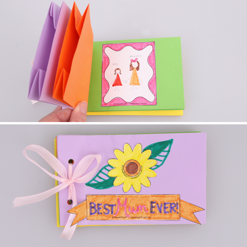 • Step 6Insert your treats, vouchers or notes into each of the gift bags then secure with tape. Your Gift Bag Book is now ready to gift to someone special for Mother’s Day!