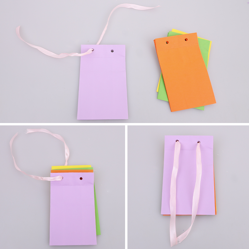 • Step 1Choose four coloured paper bags. You can choose the same or different colours. Fold the bottom of the bag down to create two flaps. Repeat for the other three bags.