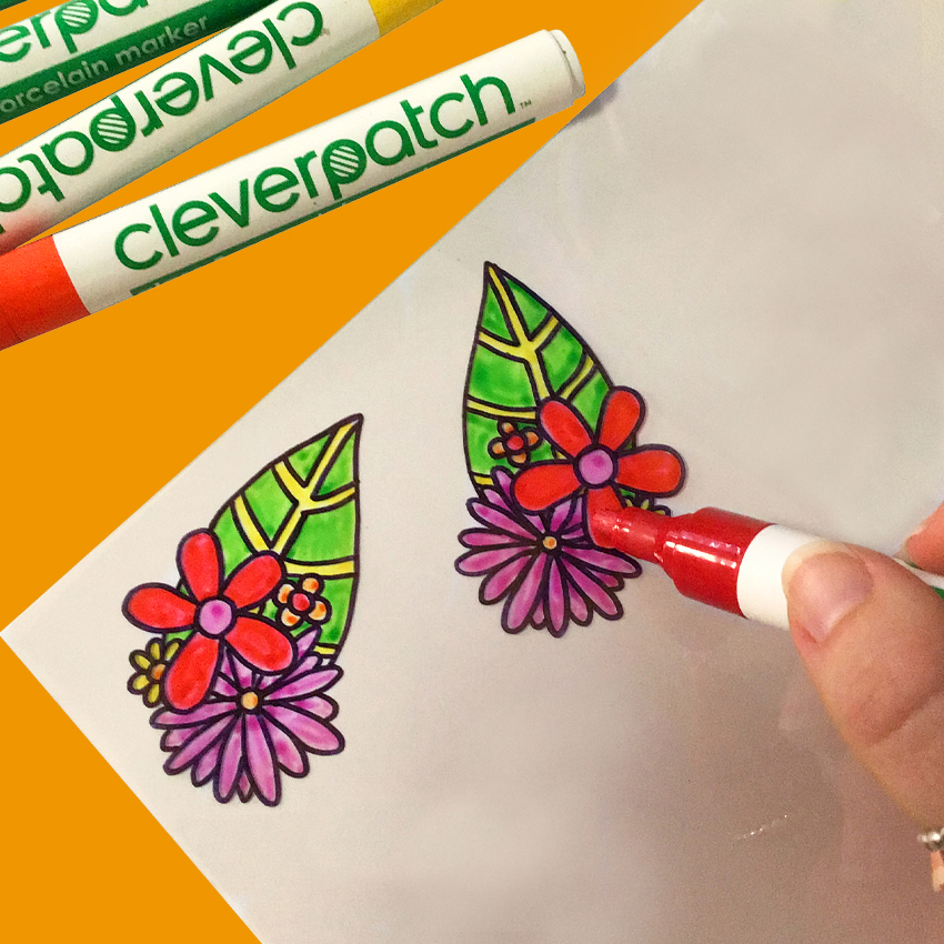 • Step 2Colour in the design using CleverPatch™ Glass & Porcelain Markers. Allow to dry.