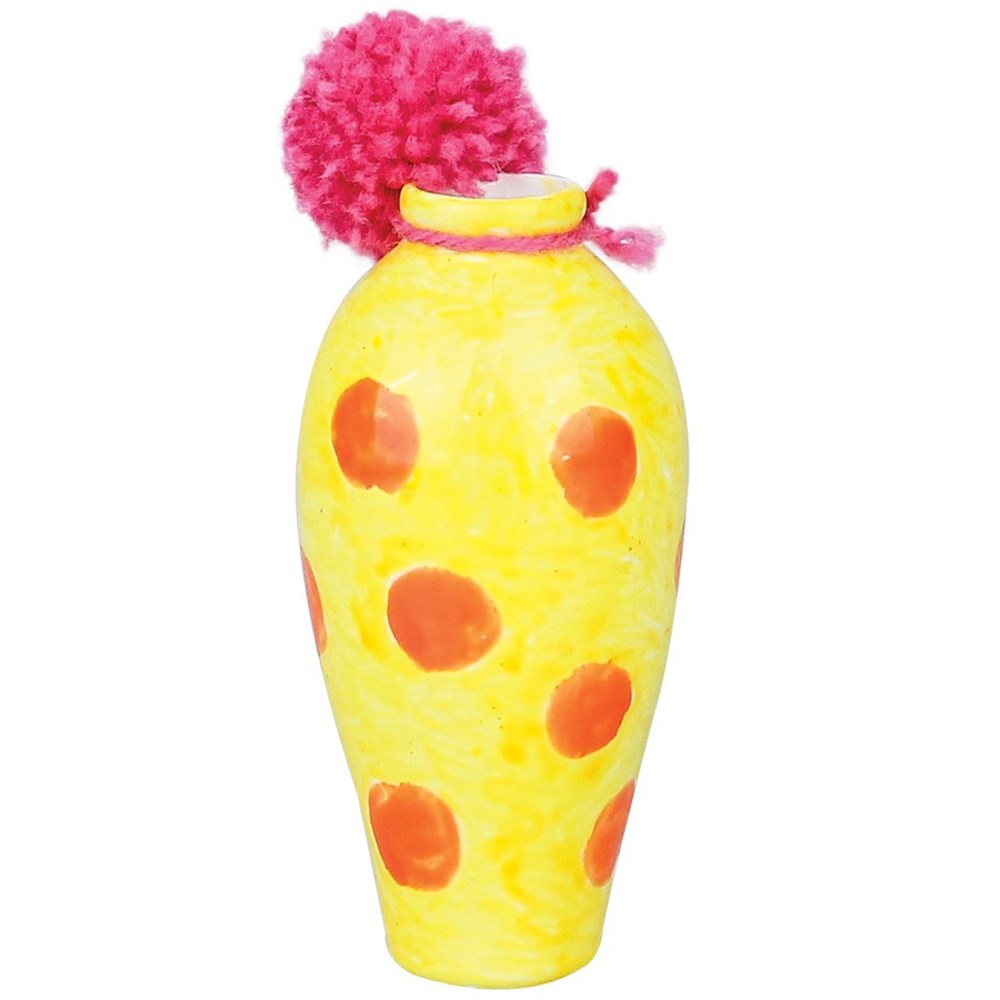 This cute vase would look great sitting on your table! The pom pom definitely adds extra flare- why not add a few more pom poms?