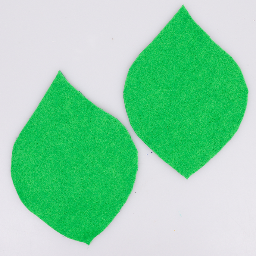 • Step 1Use the template provided to cut out two leaf shapes from green felt. Adult supervision is recommended when using scissors.