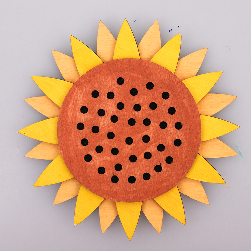 • Step 5Decorate the sunflower coaster pieces. We have used POSCA Markers but you can use your favourite craft materials. Stack the pieces of the coaster and use PVA glue to assemble. Allow to dry.