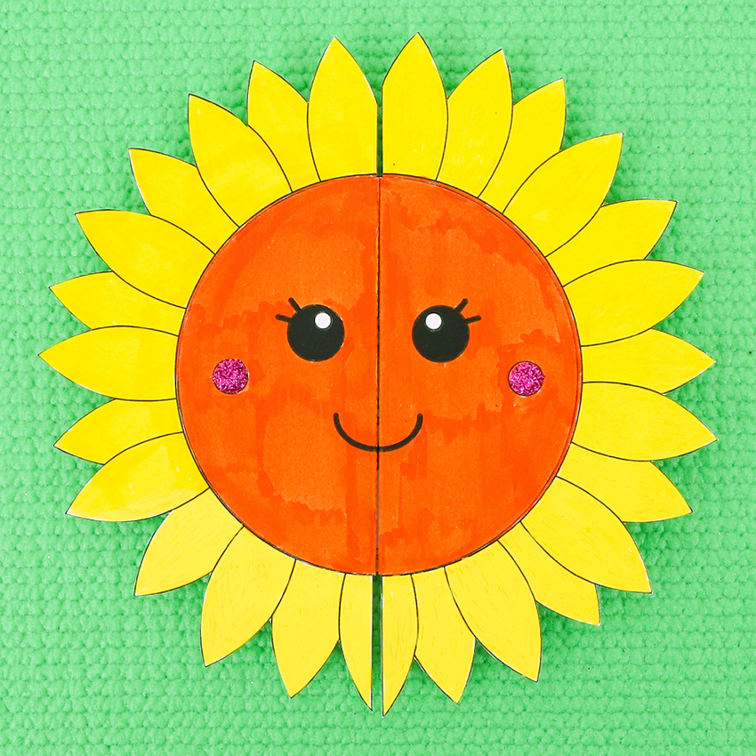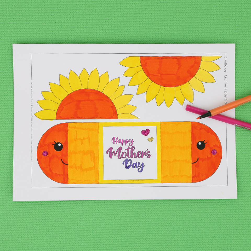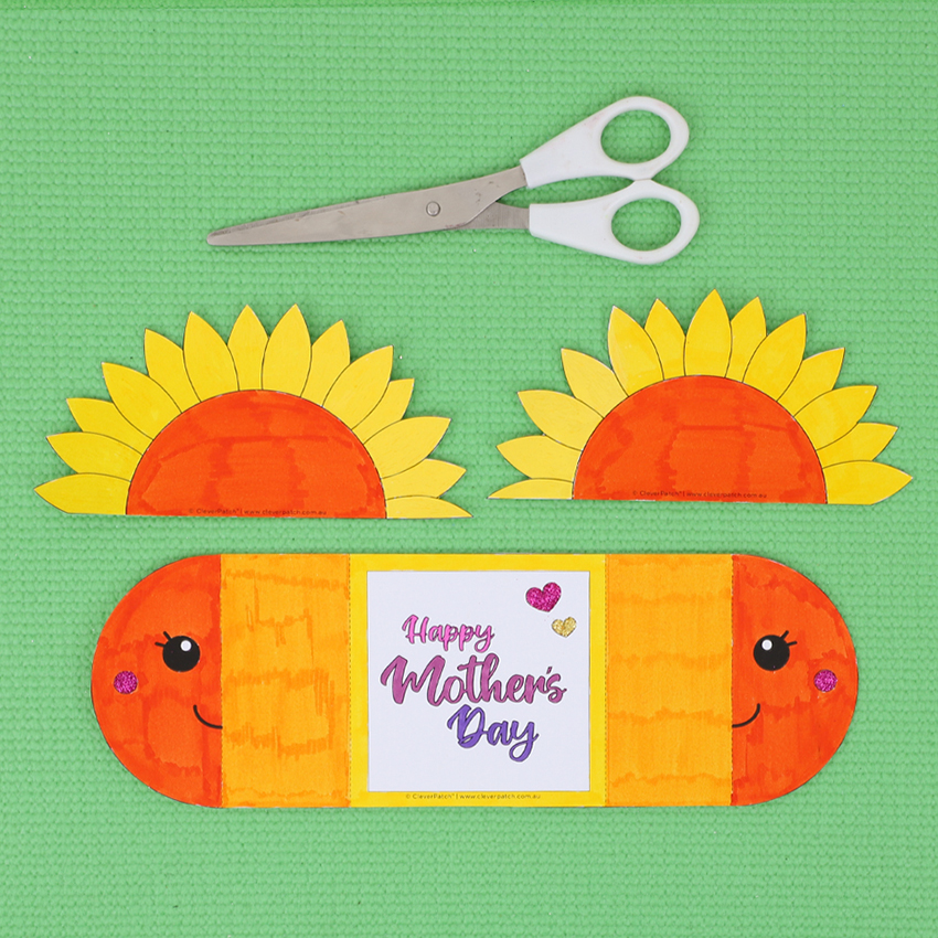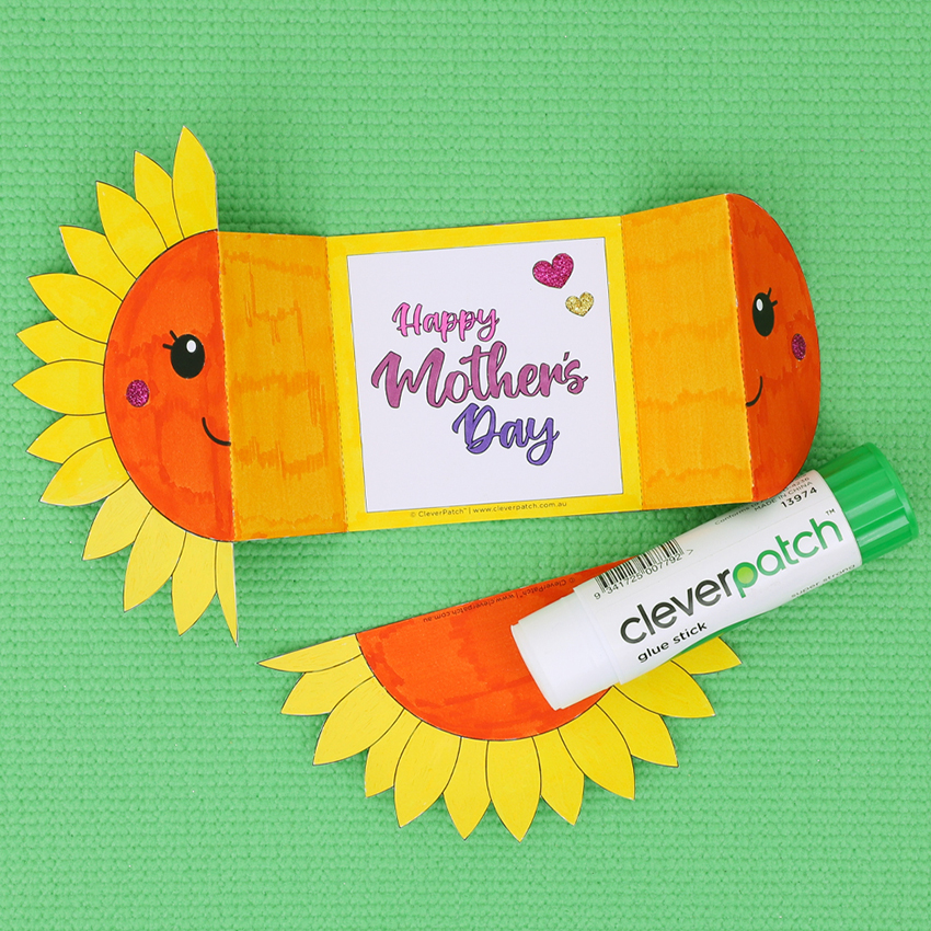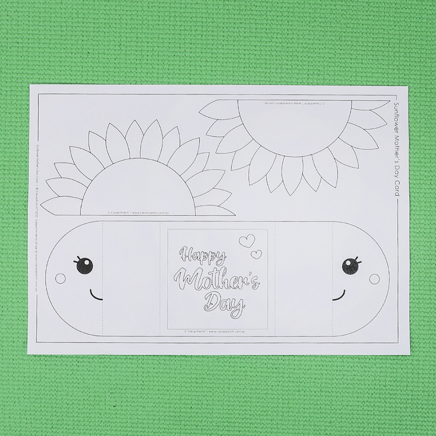 • Step 7Using the folds made earlier, fold the sunflower sections back to the centre to close the card. Don’t forget to write an extra special message inside the flaps or on the back of the card. Your card is now ready to give to someone special this Mother’s Day!