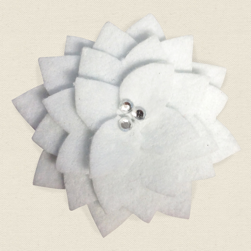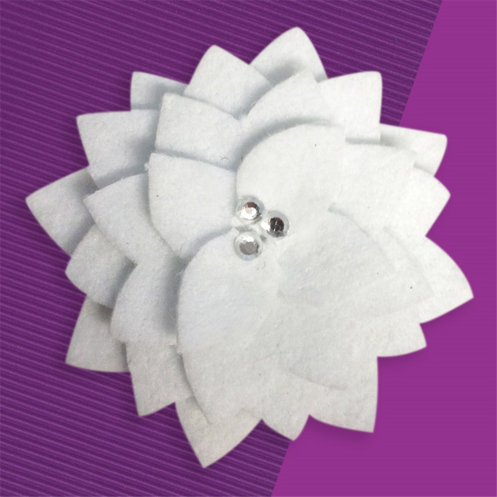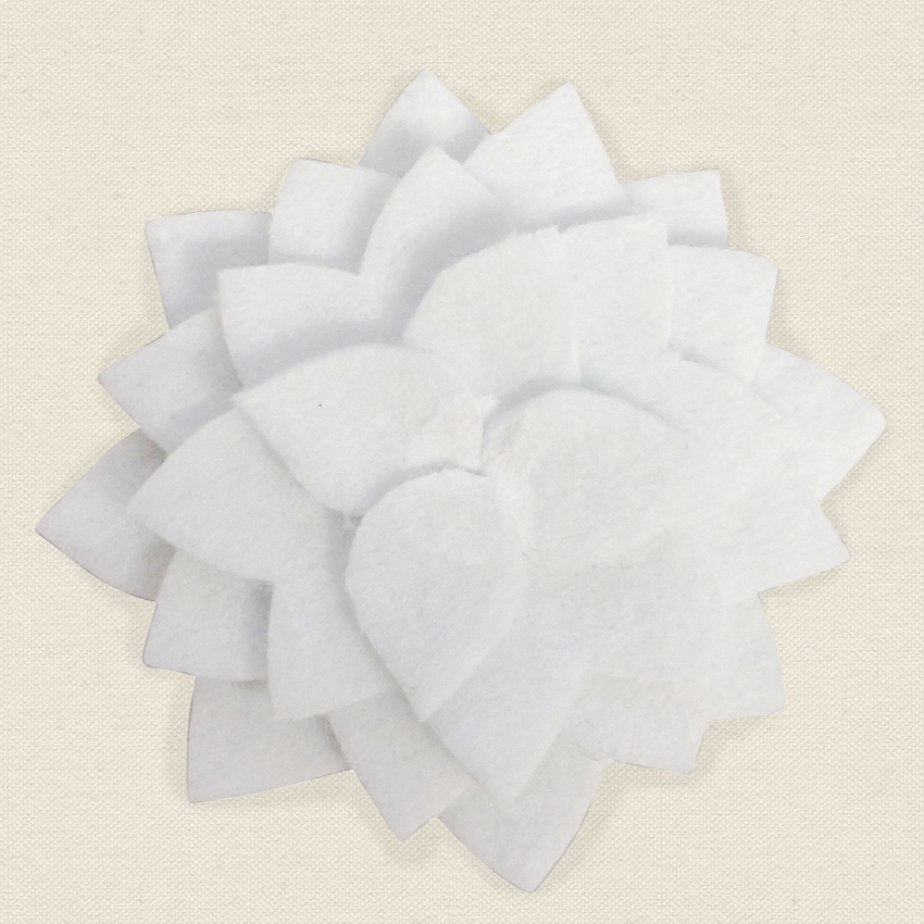 • Step 2Layer the pieces of felt on top of each other, with the largest flower on the bottom and the smallest on top. Use tacky glue to secure them together. Add the 4 individual petals to the top of the smallest flower using tacky glue. Allow to dry.