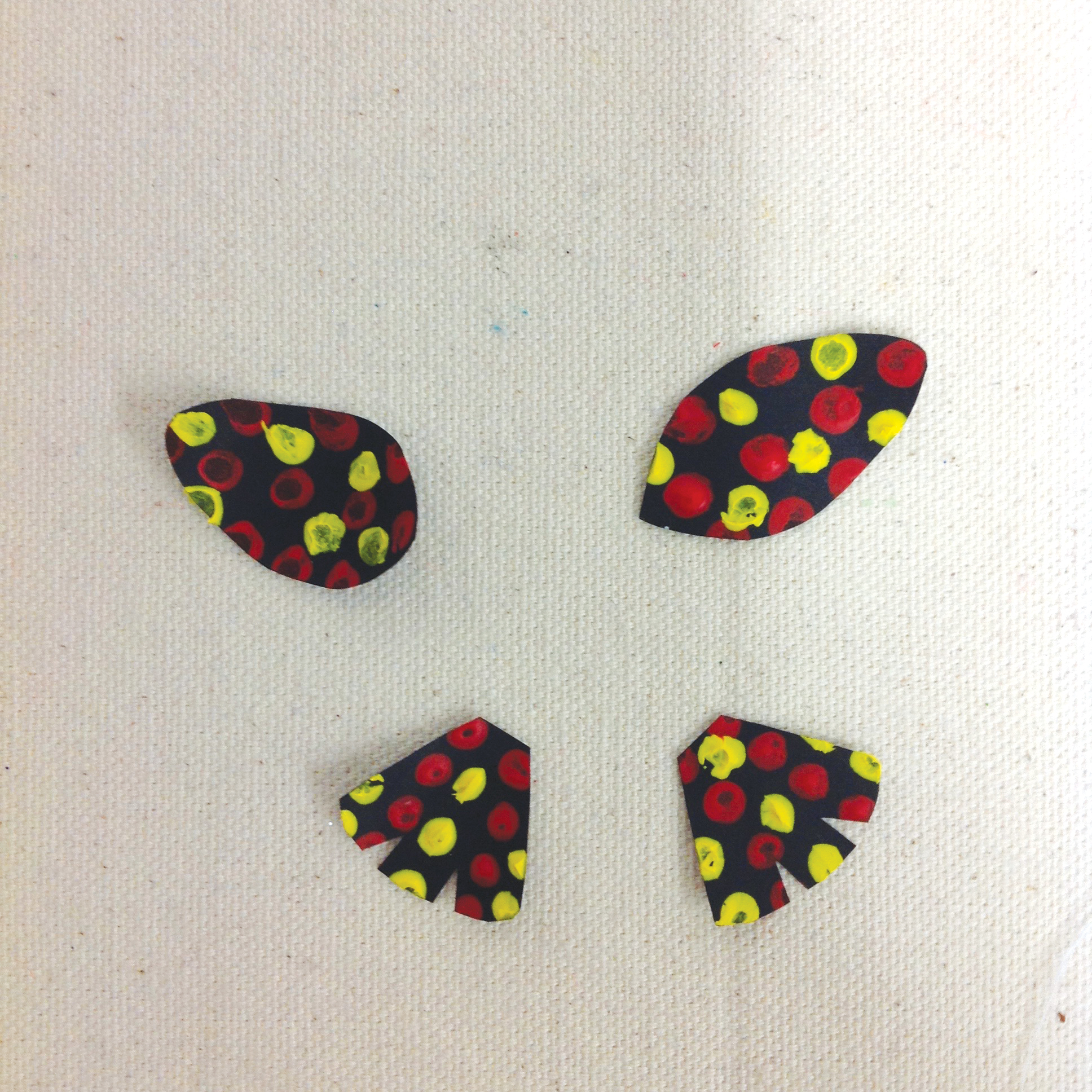 • Step 2 Decorate the feet and wings. We have dot painted using cotton filters with red and yellow paint. Allow to dry.