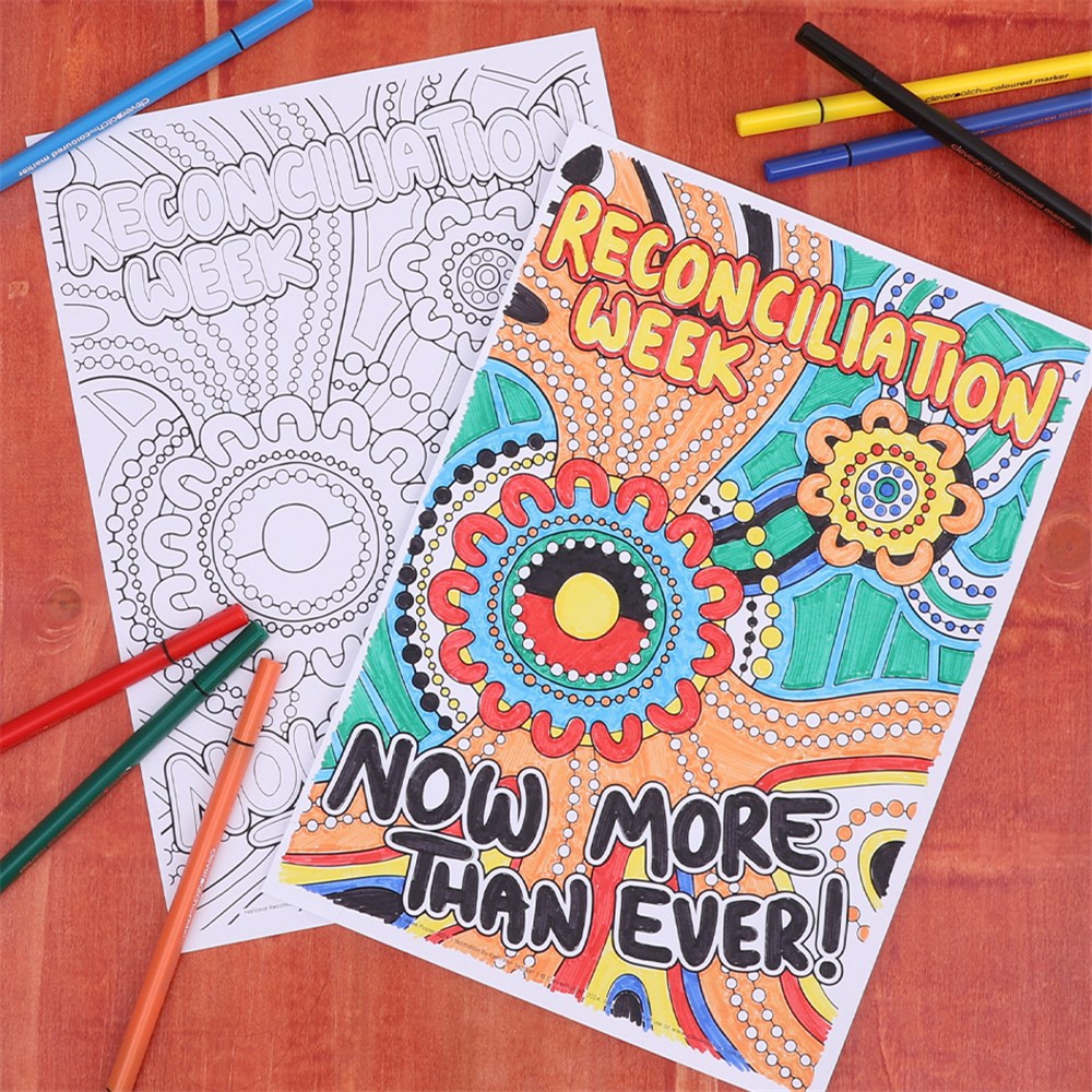 Celebrate Reconciliation Week with our beautiful colouring sheet poster designed by Kerri-Ann Taggart, an Indigenous digital artist from the Wonnarua area.