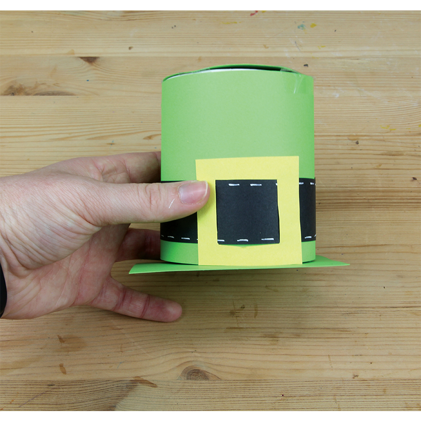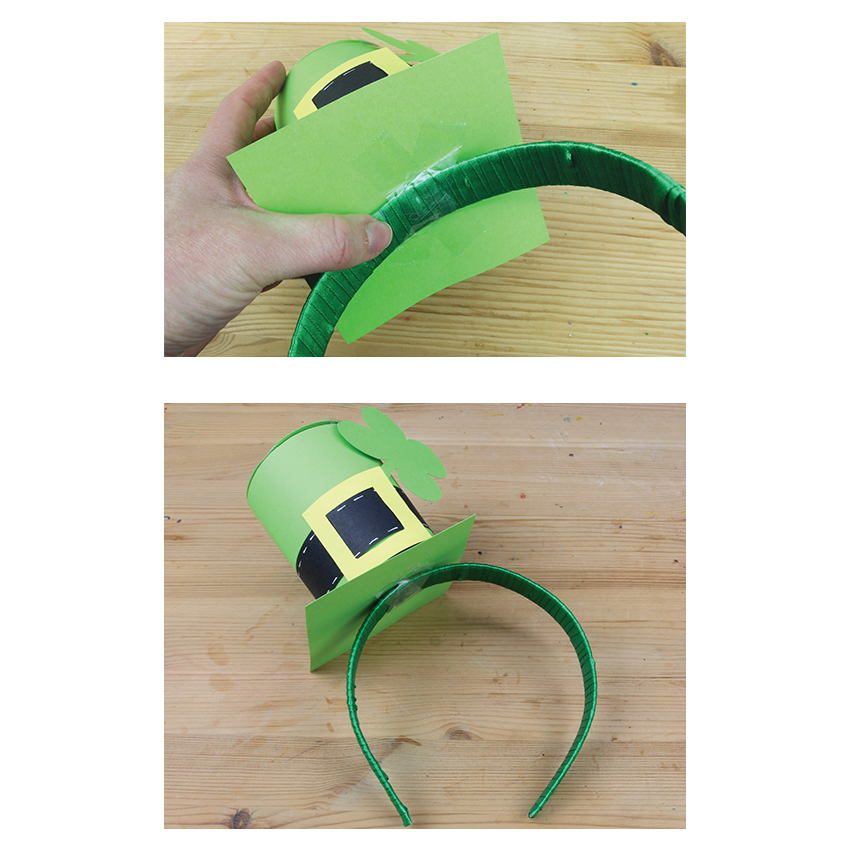 • Step 10Attach your hat to the head band with tape. Your St. Patrick’s Day Paper Cup Hat is now ready to wear!
