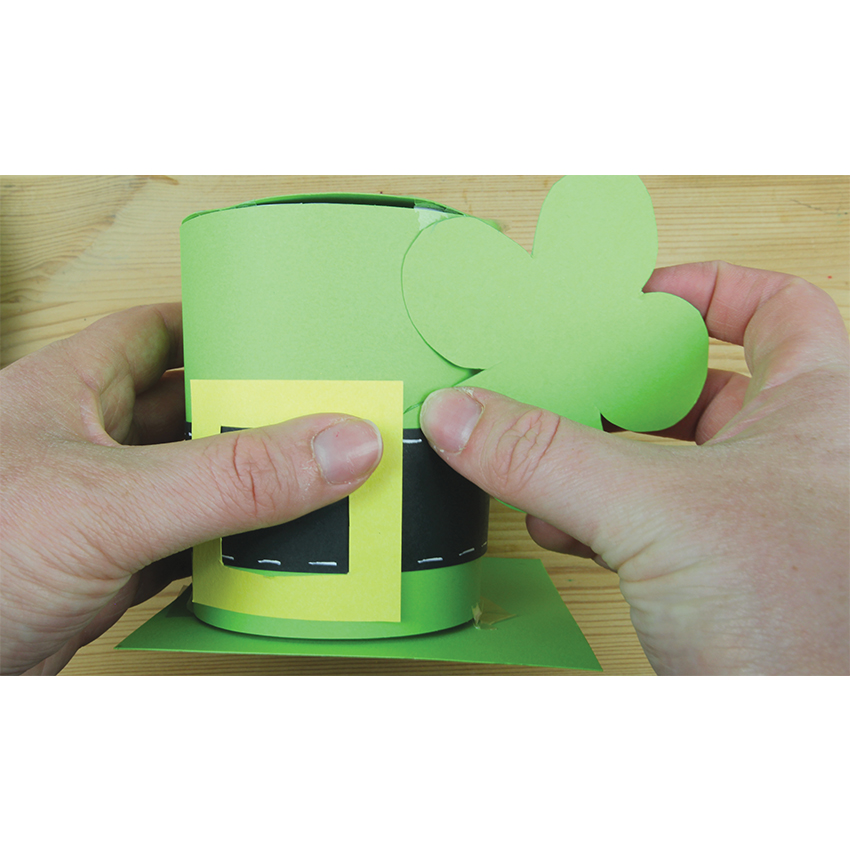 • Step 9Use glue dots to attach the clover to your hat so it sticks out from the side.