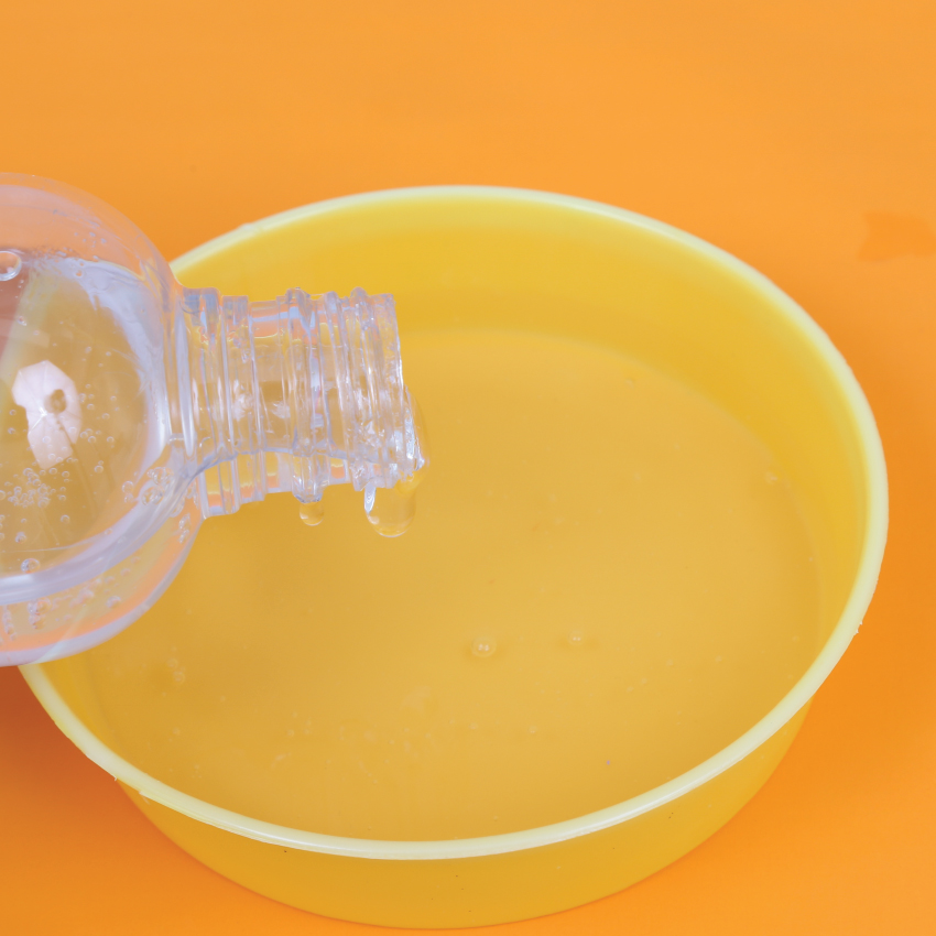 • Step 5Add the magic liquid gradually until the slime starts to come together to the consistency you are after. We have used a quarter of the bottle. You may also like to add some water to make your slime runnier.