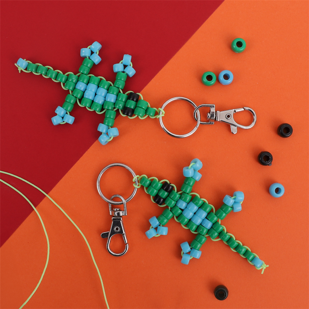 • CleverTip: You can tape the keyring to a table or sturdy surface to help keep your lizard still as you add your beads!