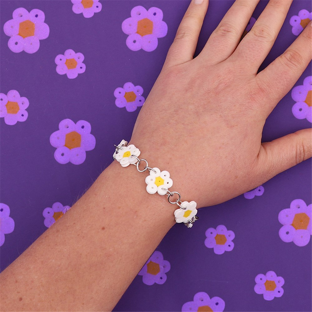 Create a Daisy Chain Bracelet using iron beads! This fun activity is perfect for gifting to friends or keeping and wearing yourself. Create as many different coloured daisies as you like!
