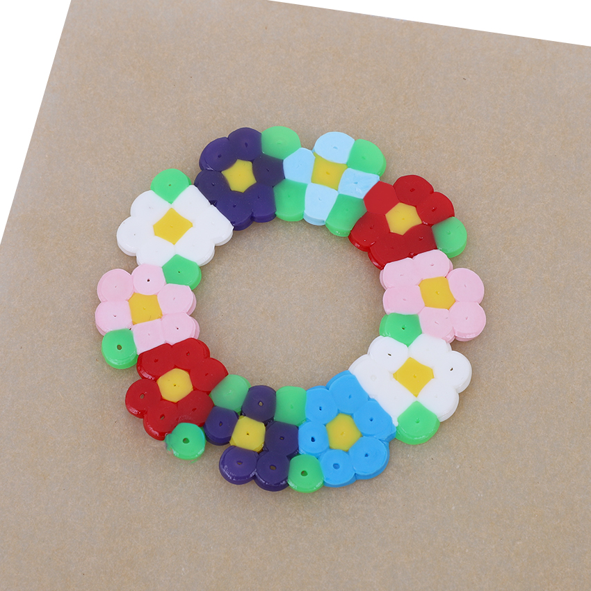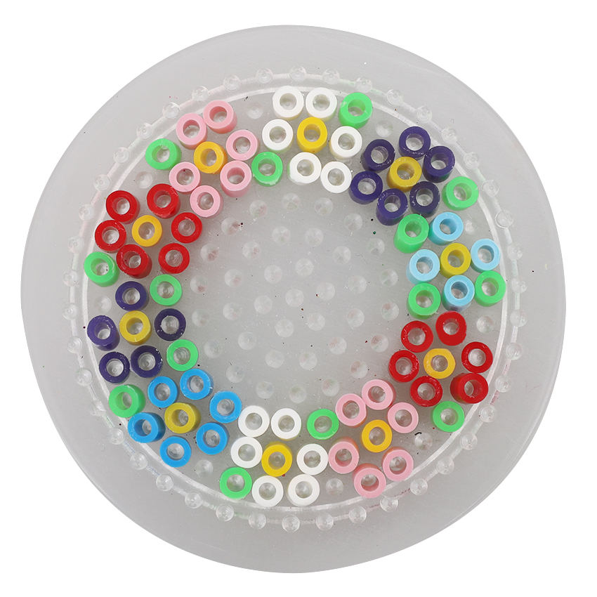 • Step 1Choose your colours and arrange the iron beads in a wreath pattern on the peg board. You can follow our design or come up with your own!