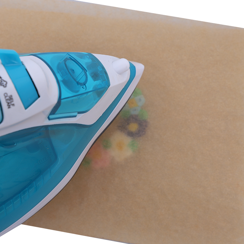 • Step 2Once you are happy with your design, place a sheet of ironing paper over the top and gently iron the beads in a circular motion for 20 - 60 seconds to fuse the beads together evenly. Adult supervision is recommended when using an iron.