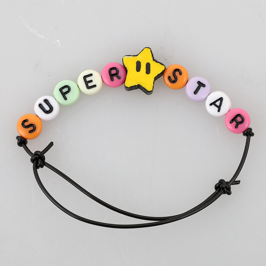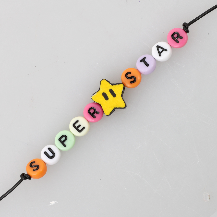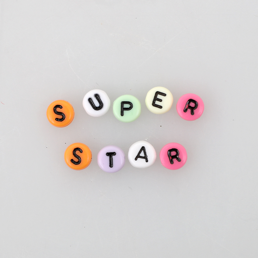 • Step 2Go through the alphabet beads and find the letters to spell out ‘Super Star’. You could also spell out the word ‘Starman’ if you wanted.