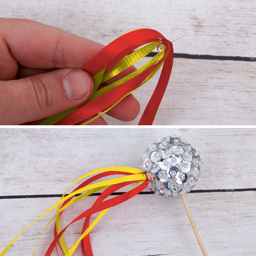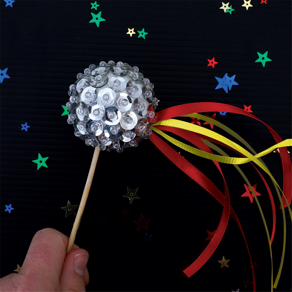 • Step 5Your Sequin Comet is now complete. Hold onto the skewer and fly your comet across the sky!