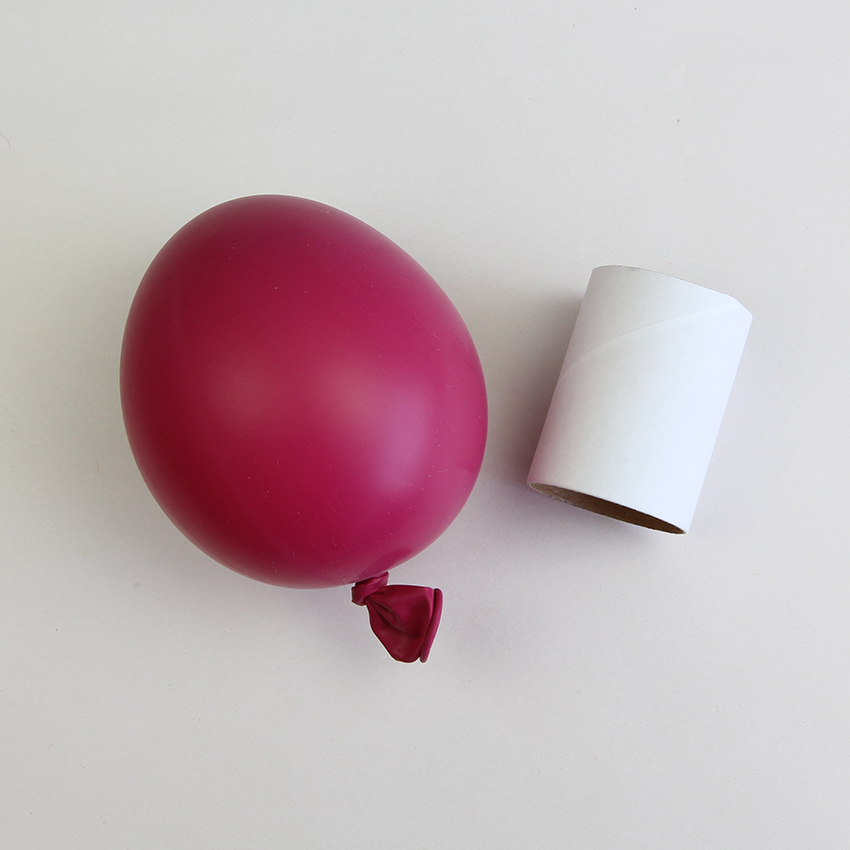 • Step 1First, we want to create a base to model our puppet’s head on. Carefully cut a cardboard roll in half to make it shorter. Adult supervision is recommended when using scissors. Inflate a balloon to create a small round sphere to sit on top of the roll. You don’t want the balloon to be too big or small. Think about what size would suit the character you wish to make.