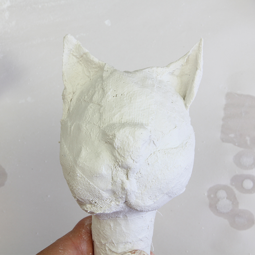 • Step 5Think about the features of your character and use the Mod-Rock to build these up on the face. We are making a cat so have added in ears, a nose and mouth. Build up the Mod-Rock on the bottom half of the face to create the mouth area. Once you have added the features, allow the Mod-Rock to dry completely.