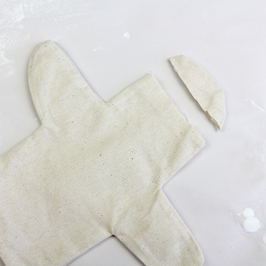 • Step 6While the Mod-Rock is drying, you can start on the puppet’s body! Cut approximately 3-4cm from the head section of a cotton hand puppet. This will create a hole that we will insert our puppet head into when complete.