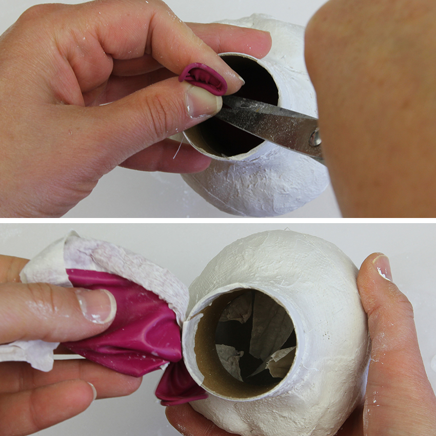 • Step 8Once the head has completely dried, carefully pull the balloon out of the open end. You may need to use scissors to pierce the balloon.