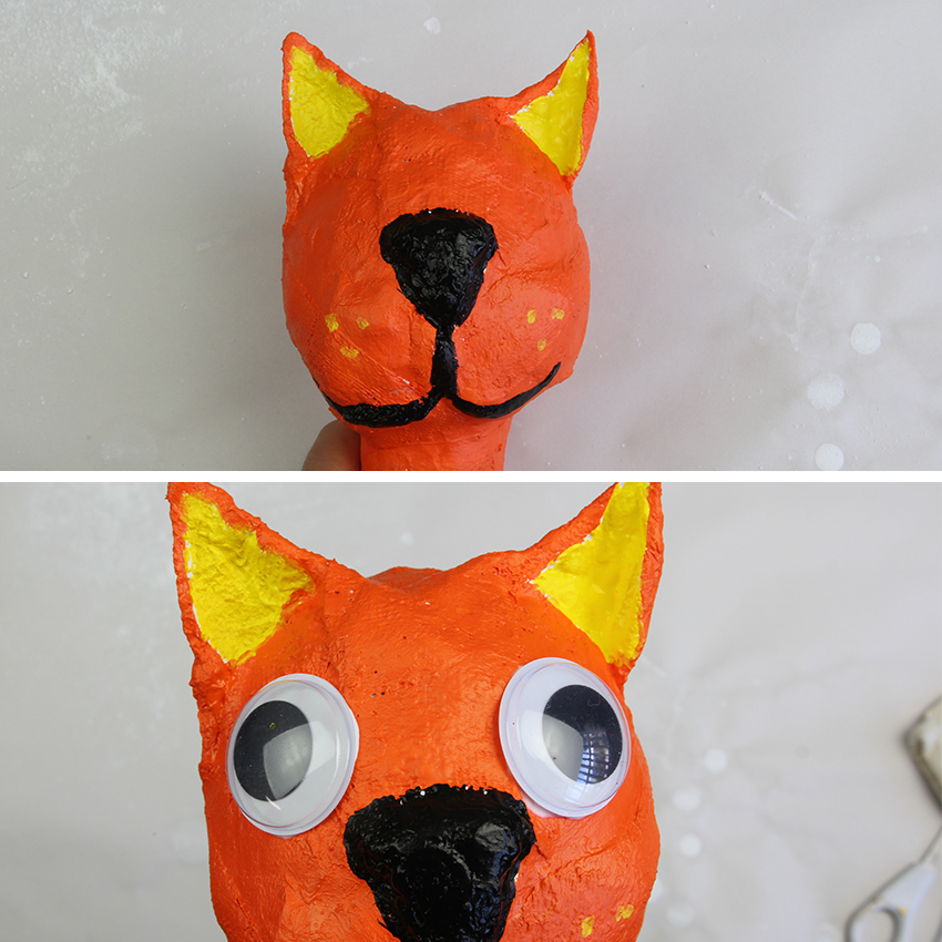 • Step 9Bring the puppet head to life using acrylic paint! You may even wish to add in collage materials such as wiggle eyes. Allow to dry.