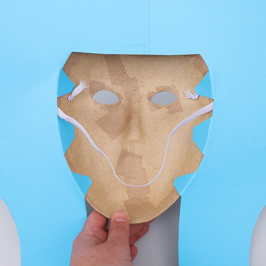 • Step 3Position the mask on top of the cardboard and fold the tabs inside the mask, securing them in place using double sided tape.
