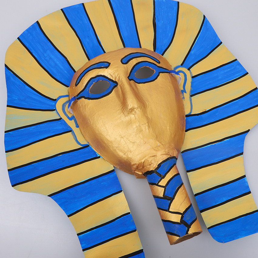 • Step 5Decorate the mask using paint and permanent markers. You may like to reference images of the original Tutankhamun mask or come up with your own design. Allow to dry and your mask will be ready to display!