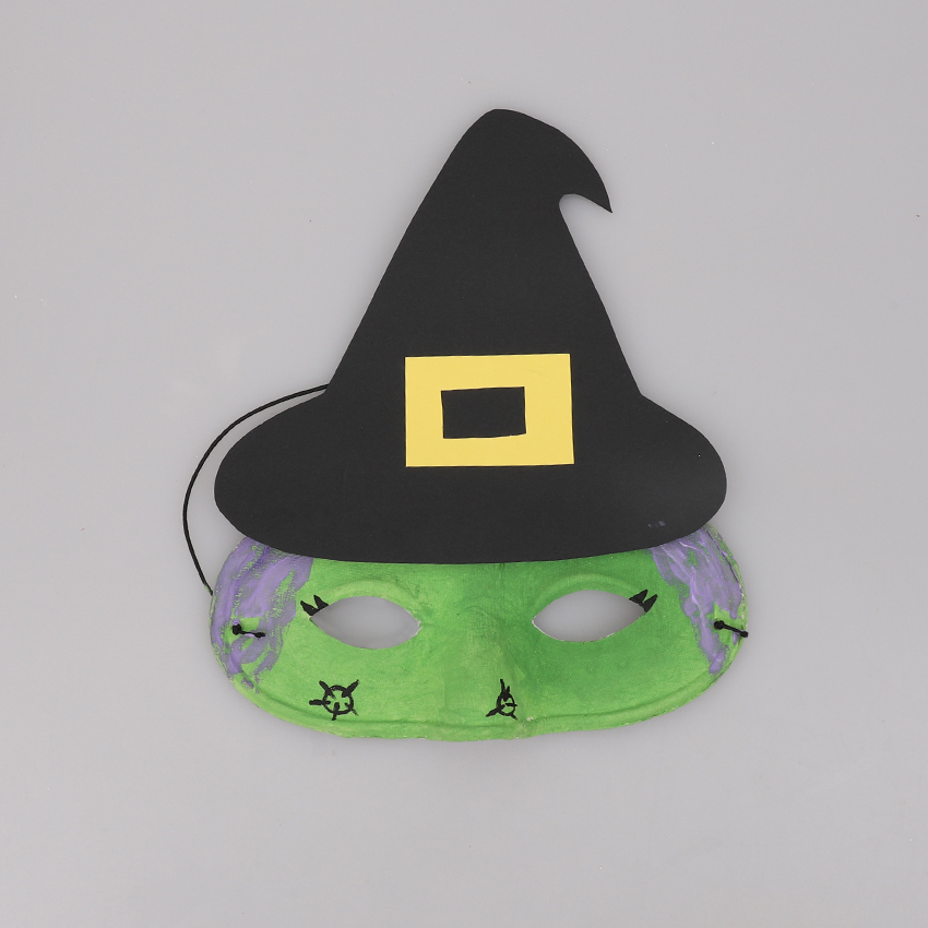 • Step 11Glue the hat to the top of the mask and allow to dry. Your Witch Mask is now ready for cackling good time this Halloween!