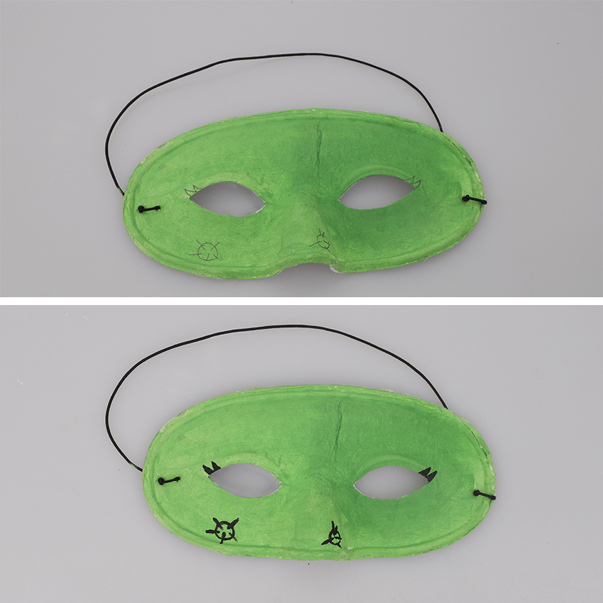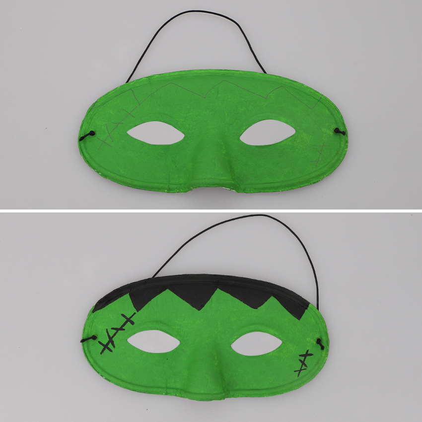 • Step 1To create a Frankenstein’s Monster Mask: Paint your mask using light green paint. Allow to dry.
