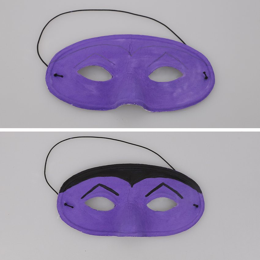 • Step 4To create a Vampire Mask: Mix 3 parts white paint and 1 part purple paint to create a light purple. Paint your mask with the light purple mixture. Allow to dry.