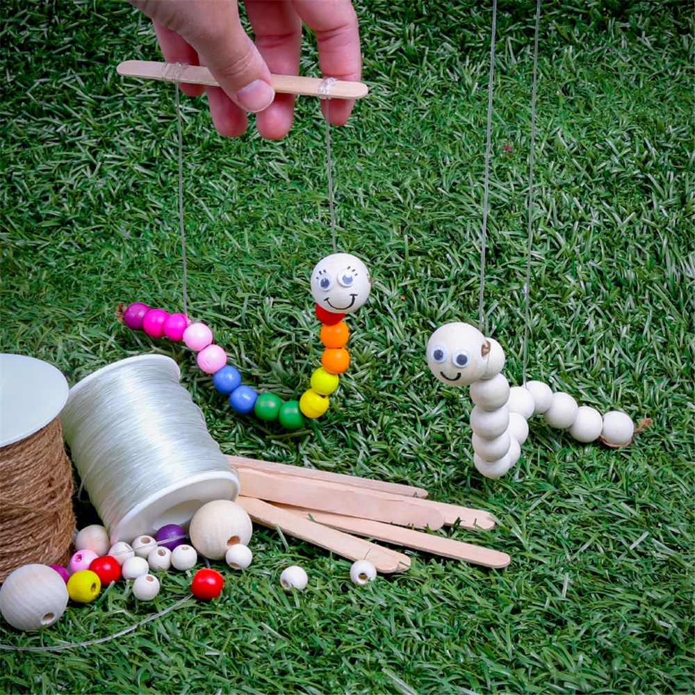 • Step 1Thread a length of twine through a large wooden bead. This will be your worm’s head.