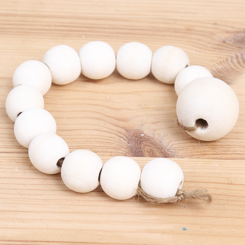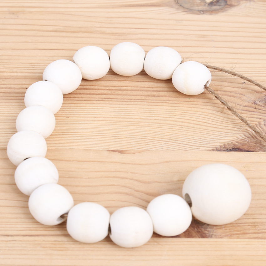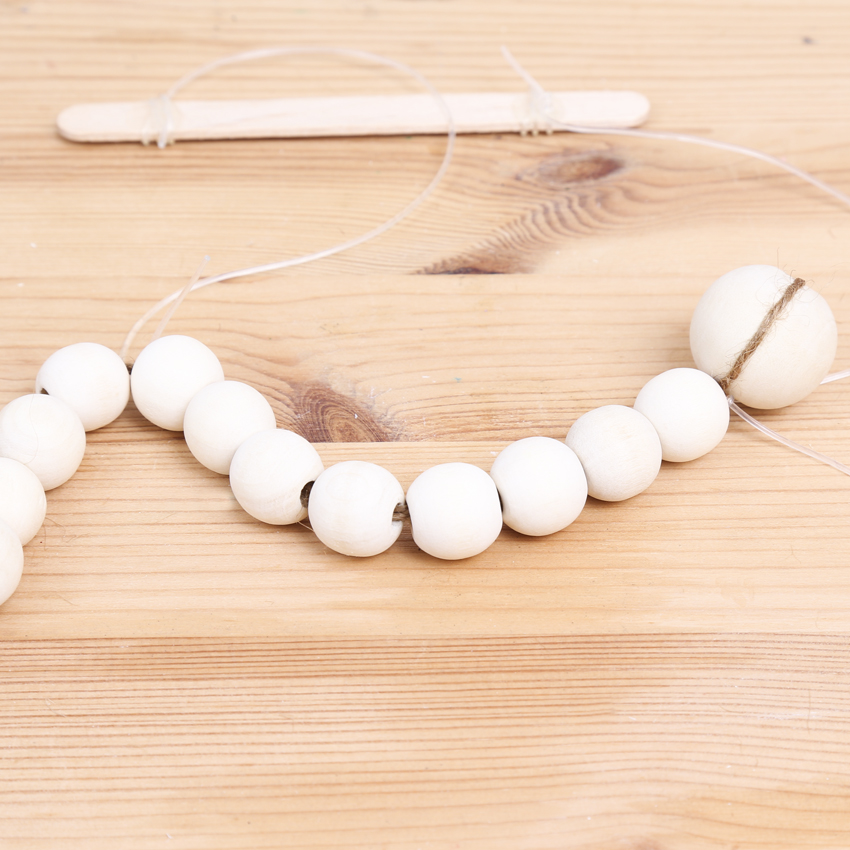 • Step 2Put the two strands of twine together and thread them both through 10 smaller wooden beads. With the last bead, thread a single piece of twine through.