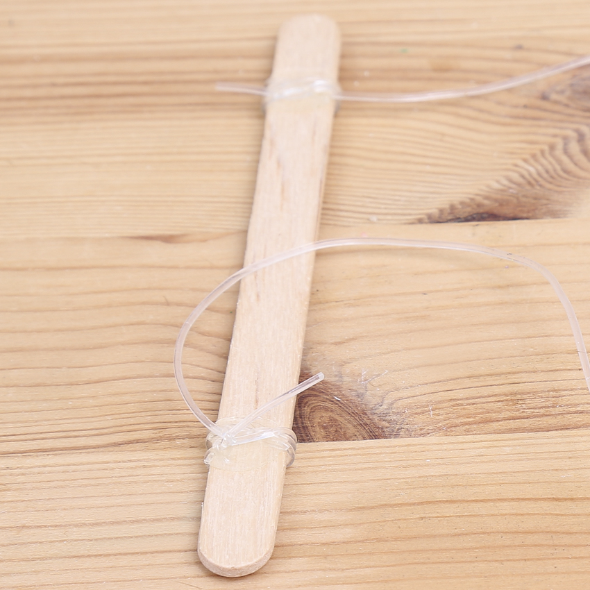 • Step 5Tie a length of craft line around the popstick on both ends where each glue dot is placed.