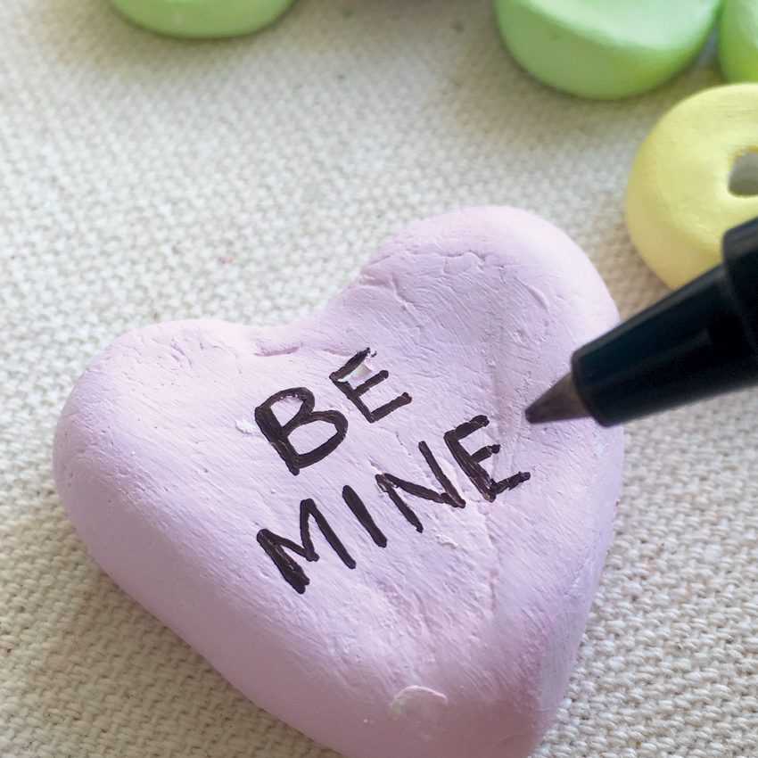 • Step 6 Use a permanent pen to write a message on the love heart shaped bead. We have gone with ‘Be Mine’ but you can get creative as you like.