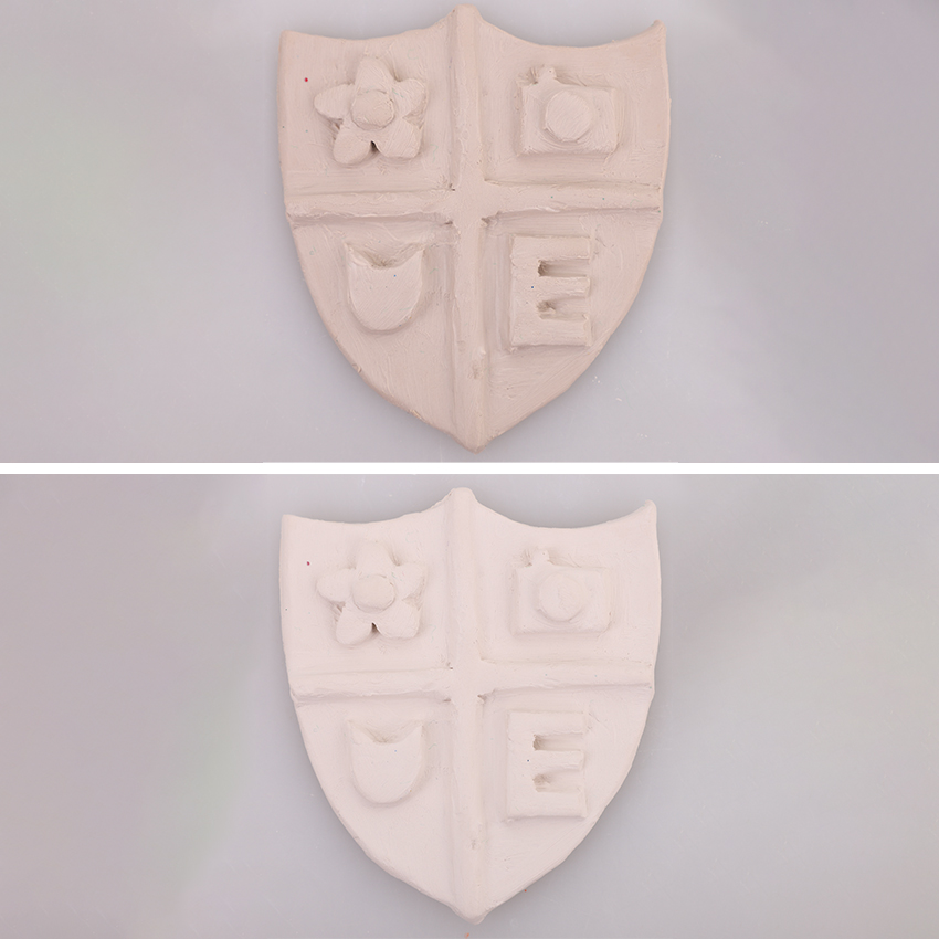 • Step 5Allow your crest to completely dry. It’s best if you can prop the crest up off your work surface to get airflow underneath as well. If the clay dries faster on top, you may experience some cracking. You will be able to tell once the clay is dry by the colour and texture.