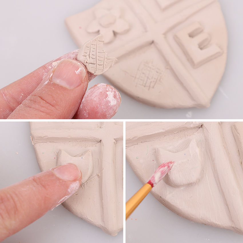 • Step 4Attach the icons in place on the crest using the scratch and slurry method. You may wish to use a paint brush at the end to smooth out any harder to reach places.