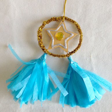 This style of Christmas decoration originates from the Philippines and represents the star that guided the wise men. It's called a parol and usually created from bamboo and coloured Japanese paper or cellophane. We've created our own miniature version of a parol to hang as an ornament on your Christmas tree!